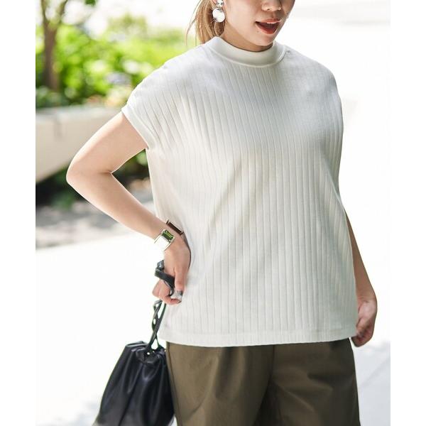 tシャツ さらり、大人こなれ感。オーガニックコットン ノースリーブ シンプル ハイネックリブニット レディース