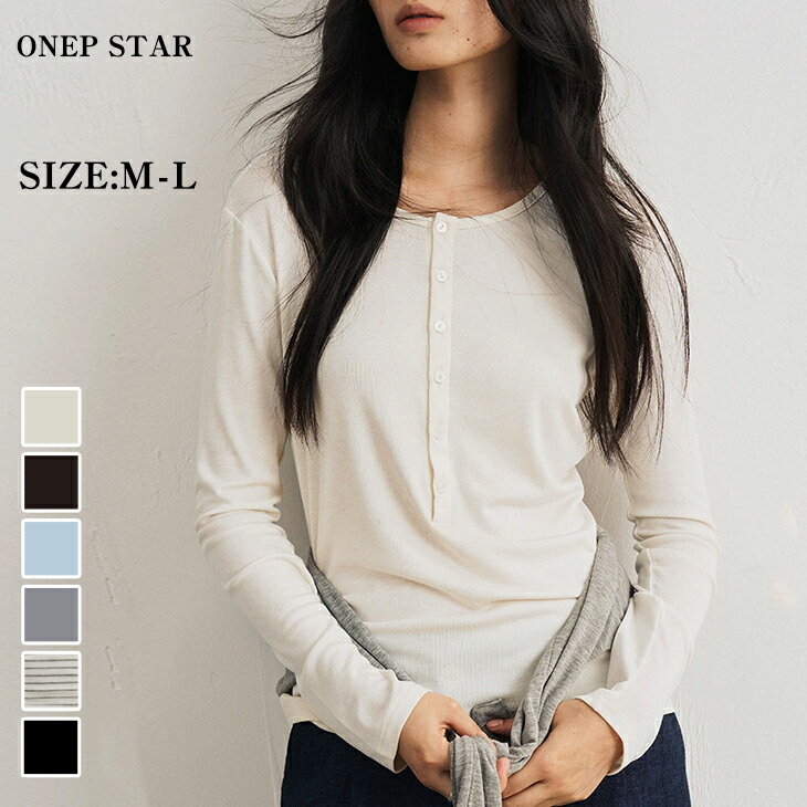【12/3 50%OFF!2点購入クーポンで】ヘンリーネックベーシックトップス レディース カットソー 長袖 ボタン付き ラウンドネック シンプル 着回し ベーシック 大人カジュア 20代 30代 40代 50代 ワンピスター