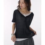 tシャツ シアー ラウンドヘム ヘンリーネックトップス レディース