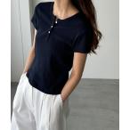 tシャツ ヘンリーネックシアーリブカットソー レディース