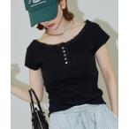 tシャツ 「mily bilet」指先も胸元も、あざと可愛い。ロゴ刺繍ヘンリーネッククロップドテレコリブカットソー レディース