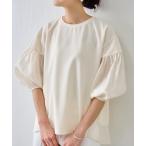 tシャツ 袖プリーツ5分袖パフスリーブTシャツ レディース