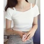 tシャツ オフショル ストラップ付き 半袖 Vネック カットソー レディース