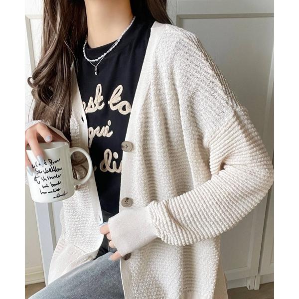 カーディガン ゆるっと羽織って、即こなれ見え。表面変化ブークレニットカーディガン レディース