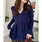 【50%OFF】【2025秋冬アイテム】ワイドリブ配色ペプラムカーディガン/MM548405 ミッシュマッシュ カーディガン 羽織り 長袖 体型カバー ニットカーデ 細見え オフィス