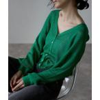 カーディガン ディープVネック ワイドリブ ペプラム カーディガン レディース