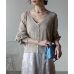 カーディガン 「手洗い可能」シアーワイドリブラメVカーディガン レディース