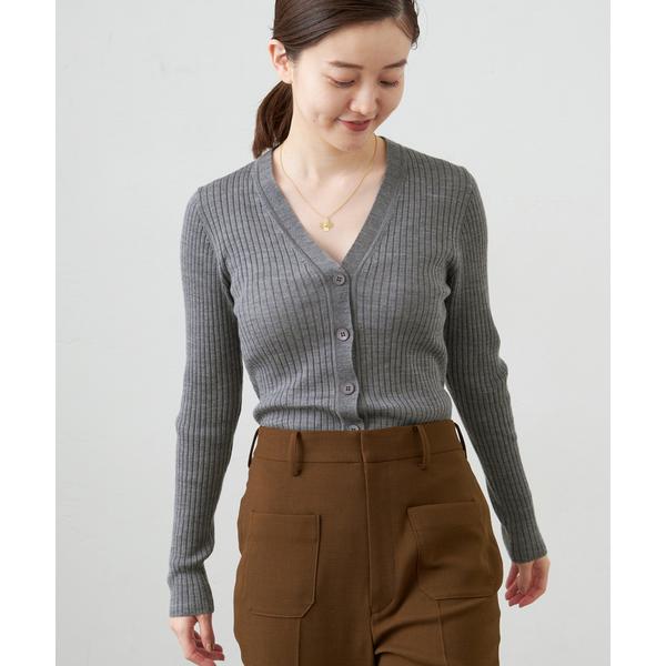 カーディガン ディープVネック ワイドリブ ペプラム カーディガン レディース