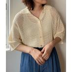 カーディガン 「コットンシルク混/7分袖」透かし編みVネックカーディガン レディース