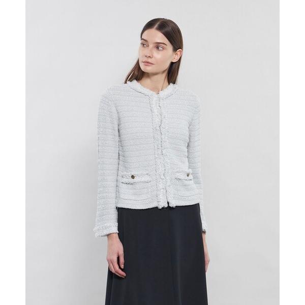 カーディガン マテリアルミックスツイード ショートカーディガン レディース
