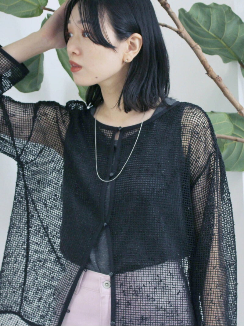 【SALE/50%OFF】SHOO・LA・RUE キラッと光るラメとスパンコールが印象的 メッシュカーディガン シューラルー トップス カーディガン ベージュ ブラック オレンジ ホワイト