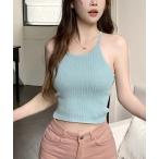 キャミソール リブニットダブルストラップショート丈キャミソール