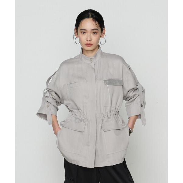 ブルゾン アウター テンセルリネンサテン ミリタリー調シャツブルゾン レディース