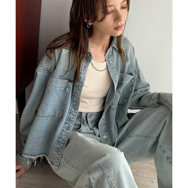 ブラウス シャツ トレンド感満載!大人の抜け感を演出するヴィンテージライクデニムクロップドシャツ(長袖) レディース