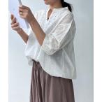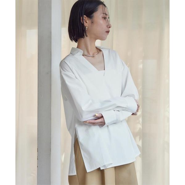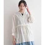 ブラウス シャツ 「JaVaジャバコラボ」抜け感スキッパー衿切り替えデザインワイドスリーブシャツ(長袖) レディース