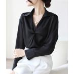 ブラウス シャツ スキッパーネック フロント ツイスト 長袖 シャツ レディース