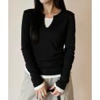 tシャツ スキッパーネック レイヤード風 サイドギャザー 長袖 トップス レディース