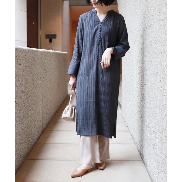 シャツワンピース スキッパー長袖 シャツワンピース