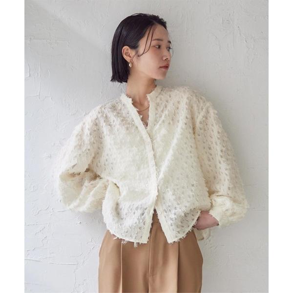 ブラウス シャツ シアーフリンジジャガードスキッパーブラウス レディース