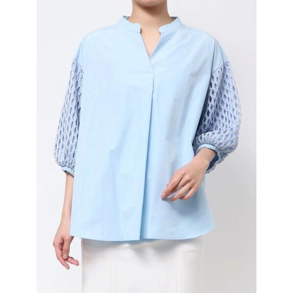 ブラウス シャツ 袖ハニカムレーススキッパーシャツ レディース