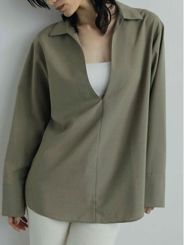 \anuke FINAL SALE/- anuke - Deep Skipper Shirts - 商品説明文 - ドライタッチな綺麗目素材で仕上げたスキッパーシャツ。 深めのあきでデコルテを見せることで女性らしくシックに着ていただけ...