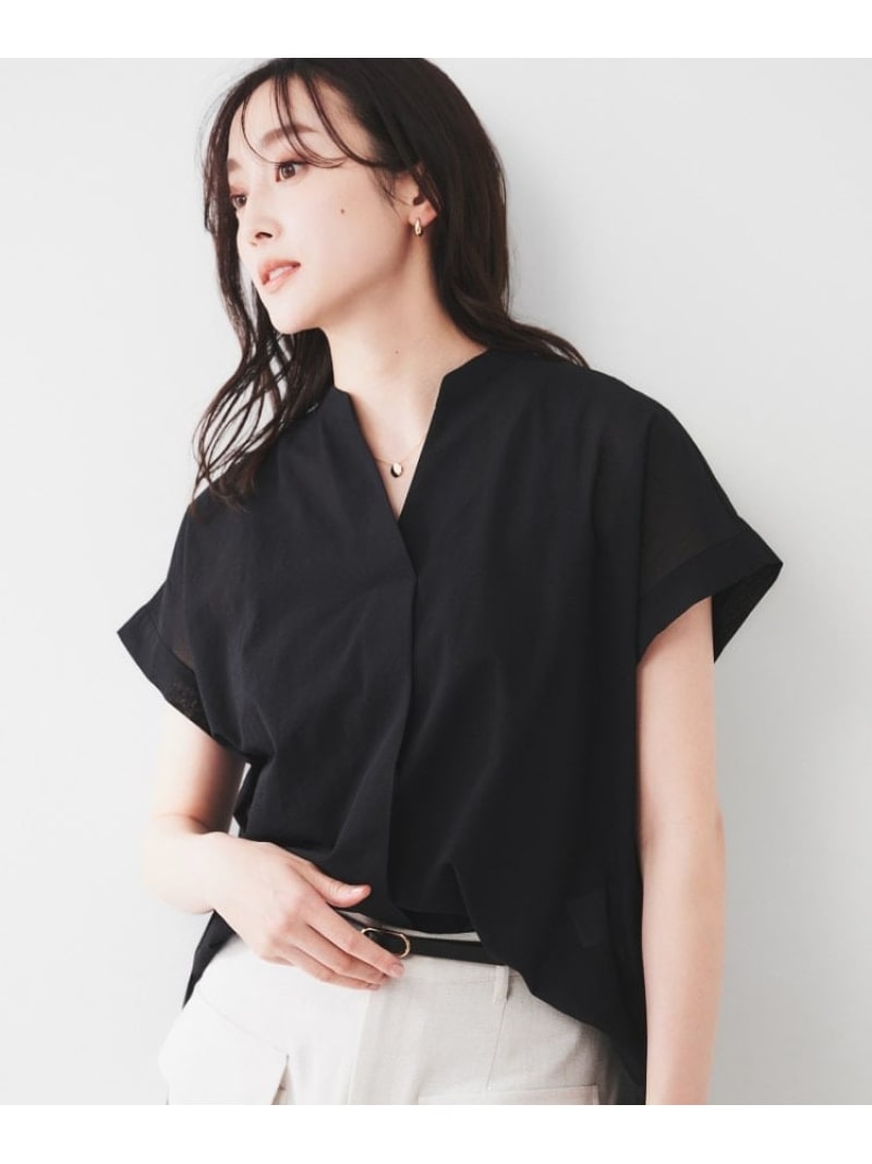 【SALE/50%OFF】【洗える/スキッパー】フレンチスリーブシアーブラウス UNTITLED アンタイトル トップス シャツ・ブラウス ブラック グリーン ホワイト ブルー【RBA_E】【送料無料】[Rakuten Fashion]