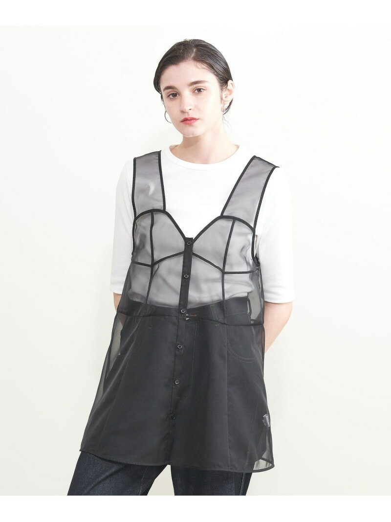 tシャツ 続・シアーアイテム。2wayメロウシアー素材ノースリーブトップス レディース