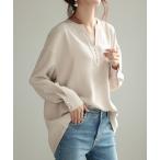 ブラウス シャツ パール付きキーネックブラウス レディース