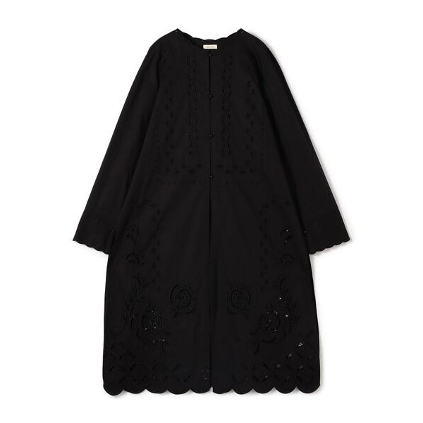 ワンピース カットワークエンブロイダリー クルーネックシャツワンピース