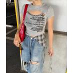 tシャツ カットワークチェックイレギュラーヘムTシャツ レディース