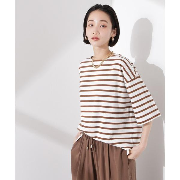 tシャツ パネルボーダーワイドトップス レディース