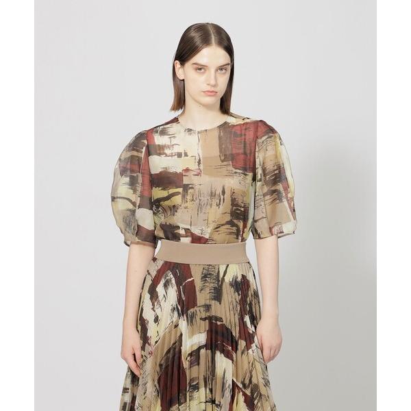 ブラウス シャツ グラフィカルプリント シアーブラウス レディース