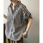 ブラウス シャツ 半袖ストライプシャツ レディース
