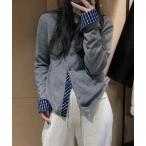 カーディガン チェックシャツ柄デザイン レイヤード風カーディガン / 配色カーディガン 韓国ファッション レディース
