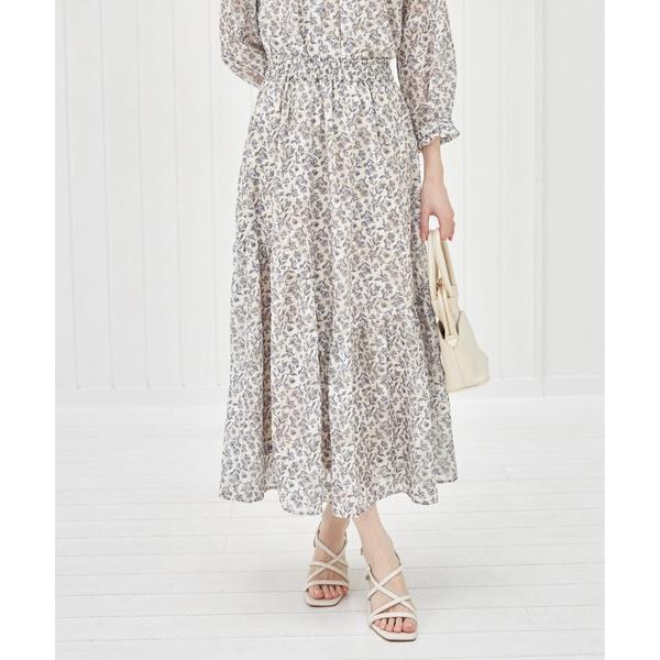 スカート 華やかに決まるのにウエストゴムで楽ちん♪ 小花柄シフォンプリーツ ロングスカート