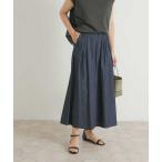 スカート Aラインナイロンボリュームタックフレアロングスカート