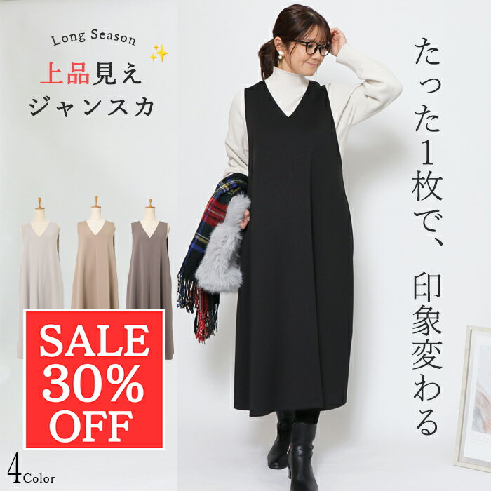 \4日20時90%offクーポン配布中&スーパーSALE 30%off/皺にならない ロング ジャンパースカート レディース 秋冬 ポケット付き 体型カバー 秋冬ミセス 10代 20代 30代 40代 50代 ゆったり きれいめ 大人 膝下丈 チュニック ワンピース ジャンスカ 重ね着 体型カバー