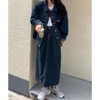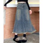 【SALE/60%OFF】INTERPLANET フリンジ切替デニムスカート インタープラネット スカート ロング・マキシスカート ブルー ブラック