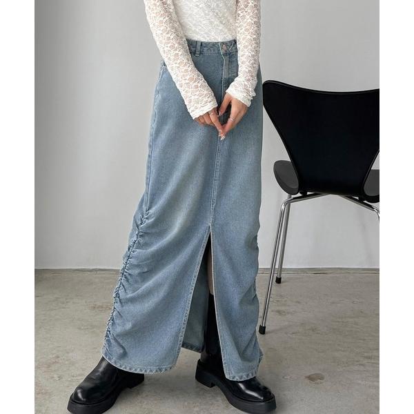 デニムスカート サイドギャザーデニムスカート