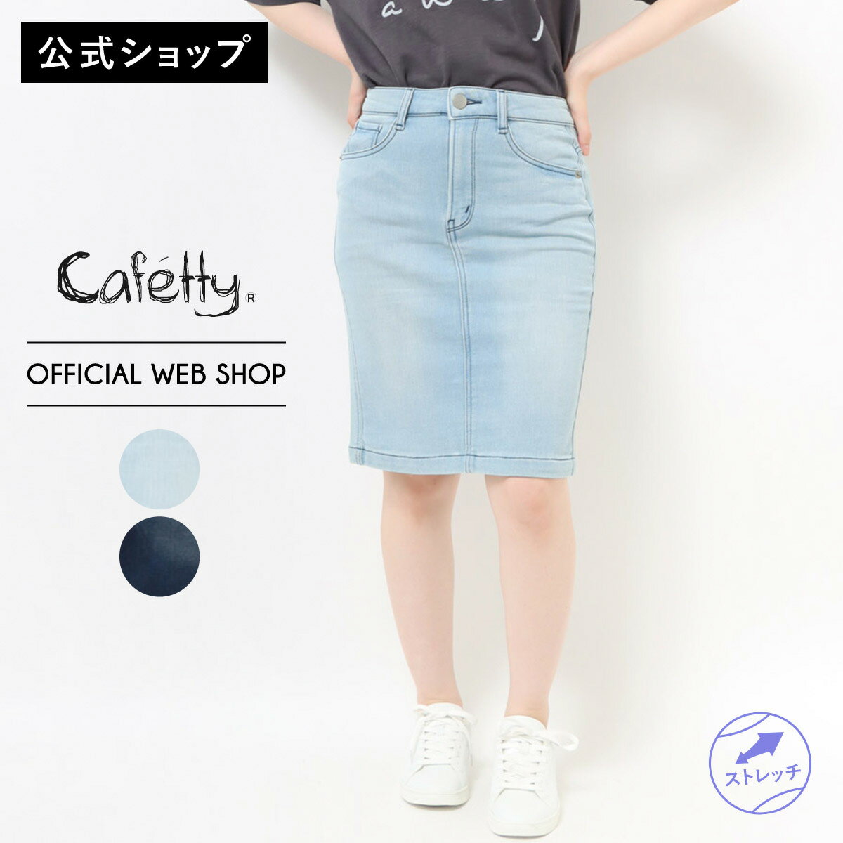 【1/16~再マークダウン!】【公式】【70%OFF】Cafetty カフェッティ ニット風素材 ペンシルスカート レディース スカート デニム 濃色 淡色 オリーブ ワンウォッシュ ライトブルー ストレッチ カジュアル ひざ丈[SALE] CF4007