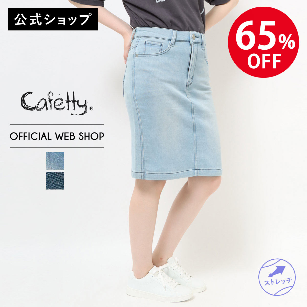 【期間限定価格】【公式】【65%OFF】Cafetty カフェッティ ニット風素材 ペンシルスカート レディース スカート デニム 濃色 淡色 オリーブ ワンウォッシュ ライトブルー ストレッチ カジュアル ひざ丈[SALE] CF4007
