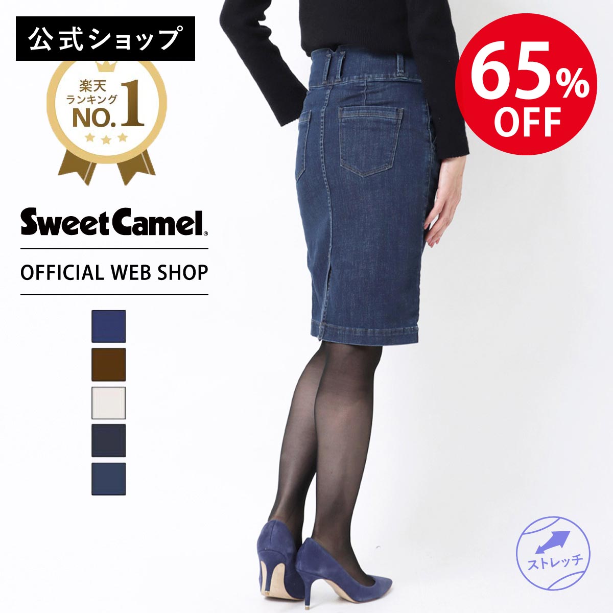【期間限定価格】【公式】【65%OFF】【暖】Sweet Camel スウィートキャメル ペンシルスカート レディース スカート デニム コーデュロイ 55-64cm ネイビー アイボリー スカート タイト タック入り 膝上丈 バックスリット 暖か あたたか [SALE] SC5005