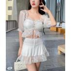 水着 Wave & Whisper オフショルトップス&フレアスカート フリル水着2点セット レディース
