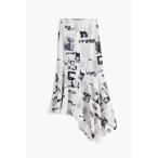 スカート 新聞プリントアシンメトリーソフトスカート