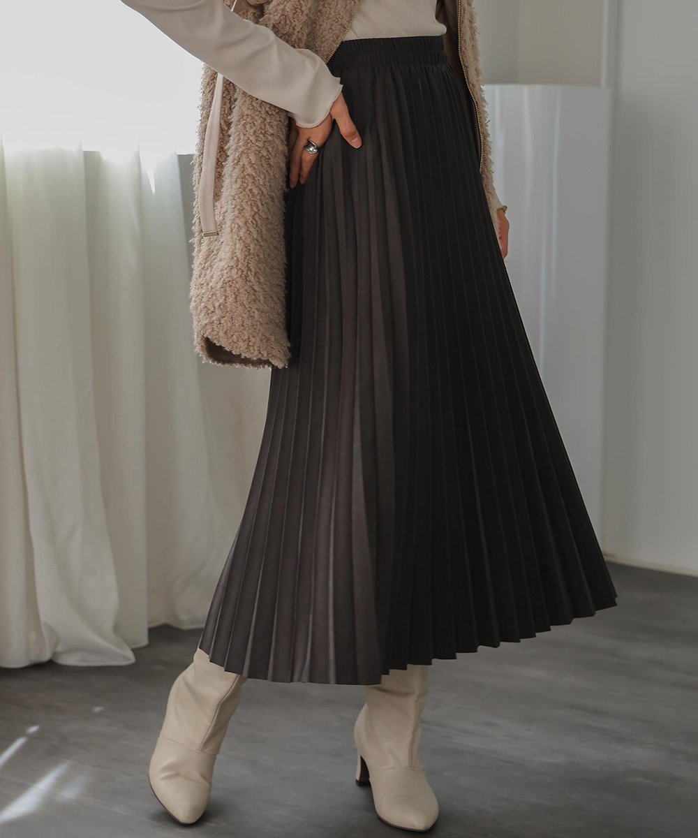 【SALE/50%OFF】BEAUTY&YOUTH UNITED ARROWS レザーライク プリーツスカート ユナイテッドアローズ アウトレット スカート ロング・マキシスカート ブラック シルバー【送料無料】