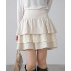 スカート 起毛レースティアードミニスカート