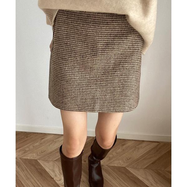 スカート ウールライクバイアスチェック柄ミニスカート(インパン付)