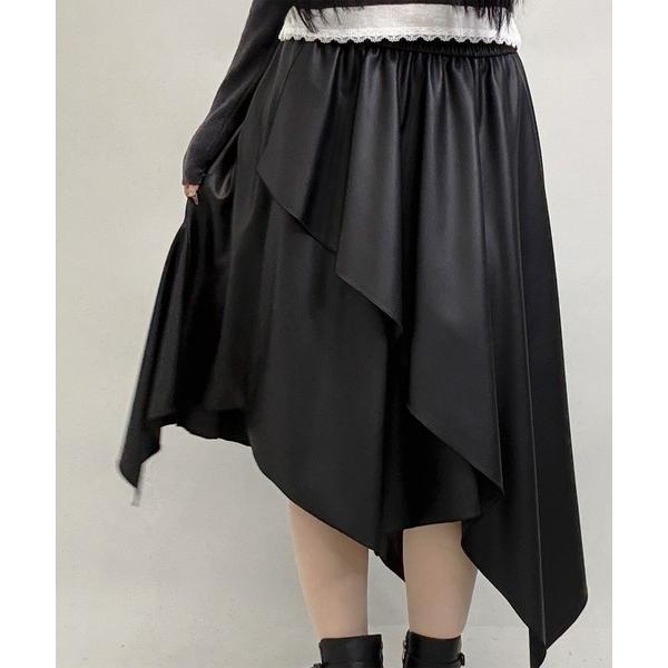 スカート アシンメトリーフェイクレザーロングスカート