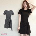 サイドリボンミニTシャツワンピース レディース 春夏秋冬 新作 半袖 ラップスカート風 ショート丈 無地 韓国風 ダークグレー ブラック 黒 SML JOCOSA 8843