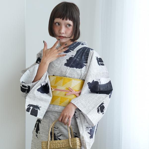 浴衣 レディース セット ニコアンティーク セパレート二部式 3点セット(ゆかた上下・帯・下駄) 黒い帆船 フリーサイズ レトロ